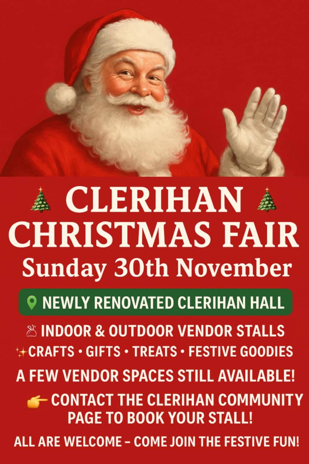 Vendor stalls, Santa will arrive at 14:00