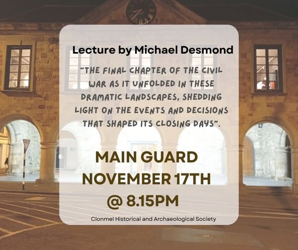 The lecture will be in the Main Guard Clonmel at 8.15pm.