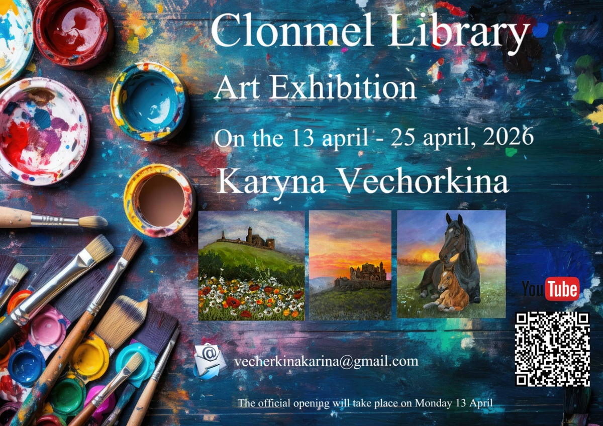 The latest art exhibition by Karyna Vechorkina is now on display at Clonmel Library from 13th – 25th of April. Don’t miss the chance to see these beautiful works while you can!