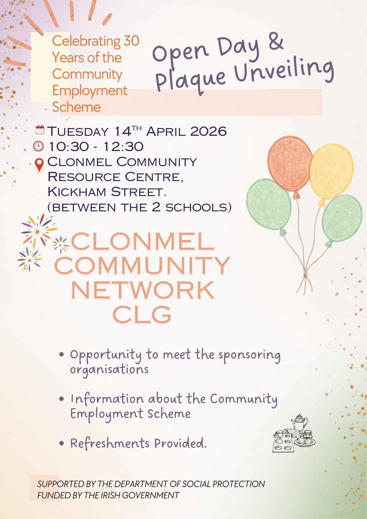 We are delighted to be hosting a plaque unveiling and open day to celebrate 30 years of the Community Employment Scheme. Please see the attached poster for full event details.