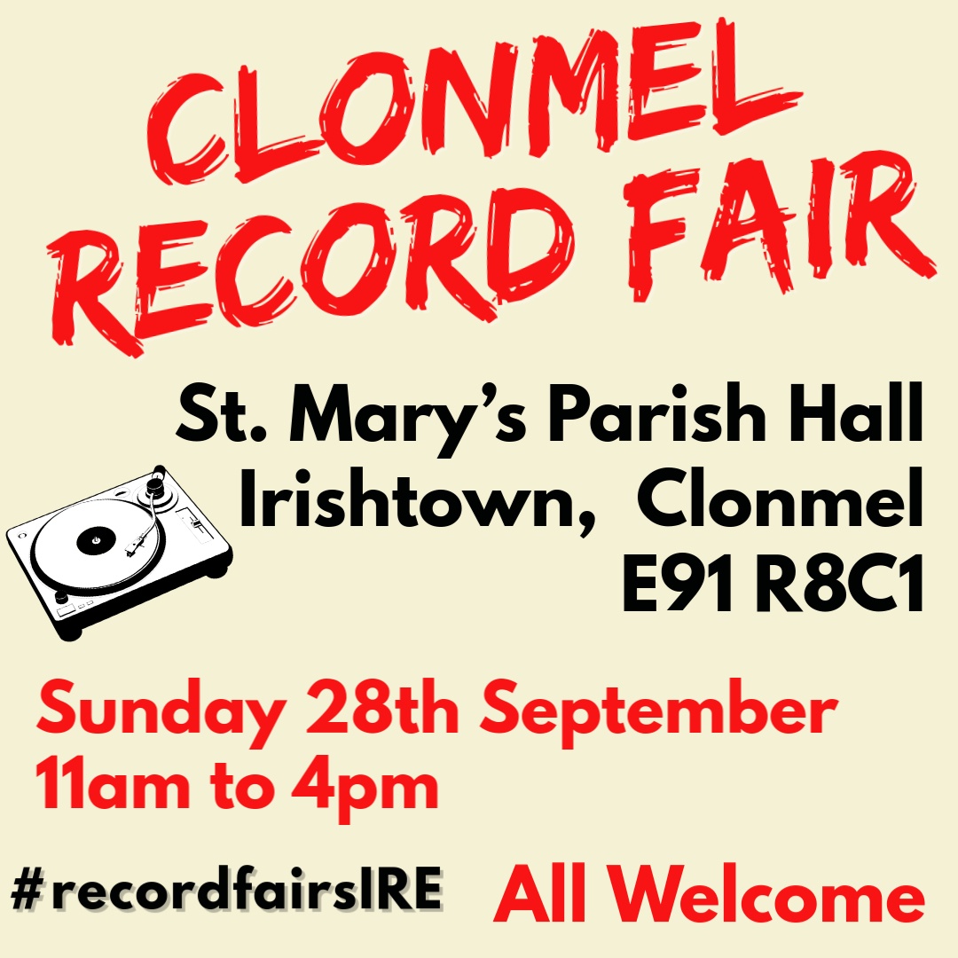 In Clonmel this Sunday, September 28th, there will be a Record, Cassette & CD Fair at St. Mary's Parish Hall, Irishtown from 11.00am!