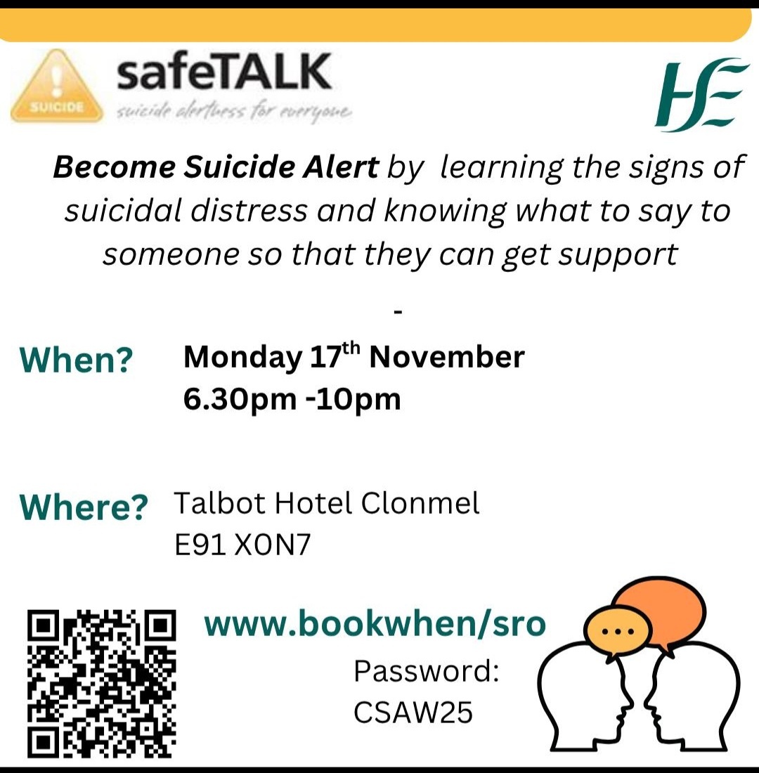 Certified HSE course; learn the signs of suicidal distress and what to say so they can get support