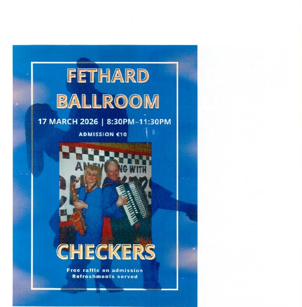 All are welcome to come along and enjoy a terrific night’s social dancing. Admission is €10, which includes refreshments.