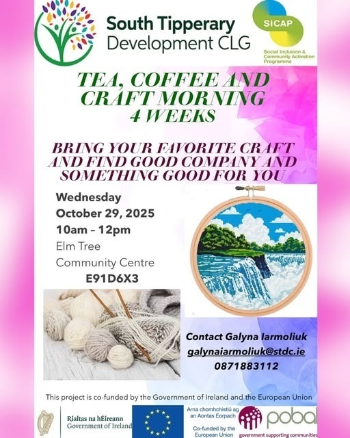 Join us for 4 Wednesday mornings, starting 29th October, 10am-12pm at Elm Tree Community Centre (E91D6X3).