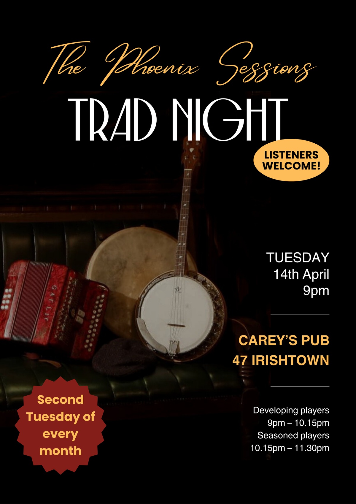 Monthly trad night, open to developing and seasoned players, listeners welcomed