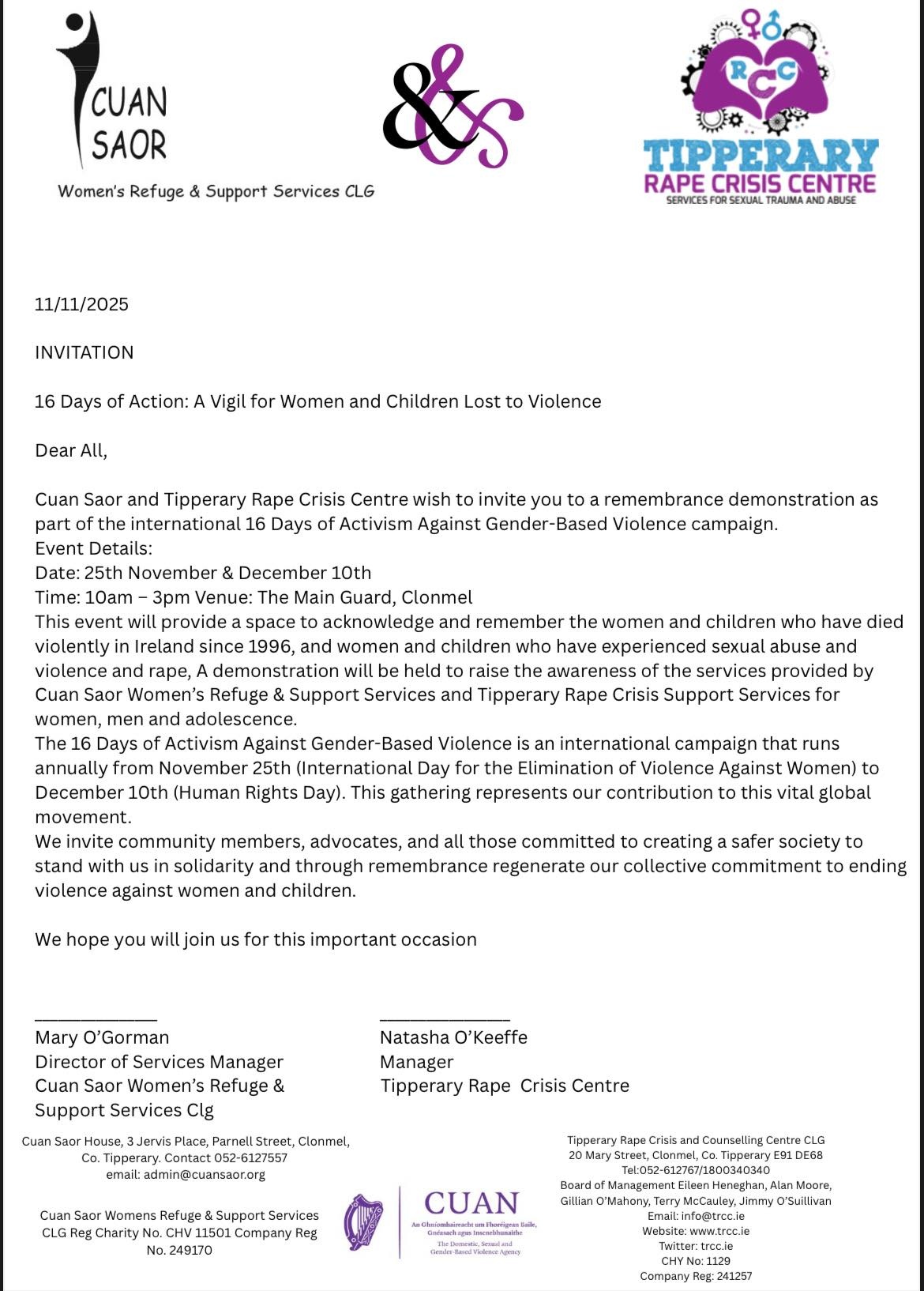 Remembrance demonstration; Cuan Saor & TRCC